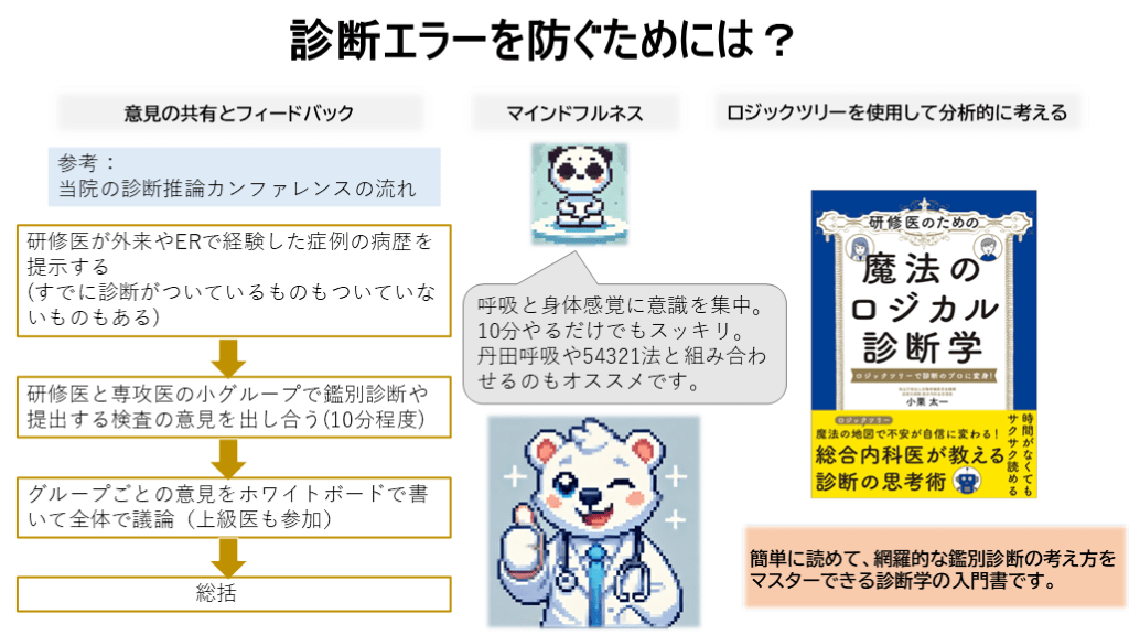 丹田呼吸や54321法と組み合わせるのもオススメです。 診断エラーを防ぐためには?