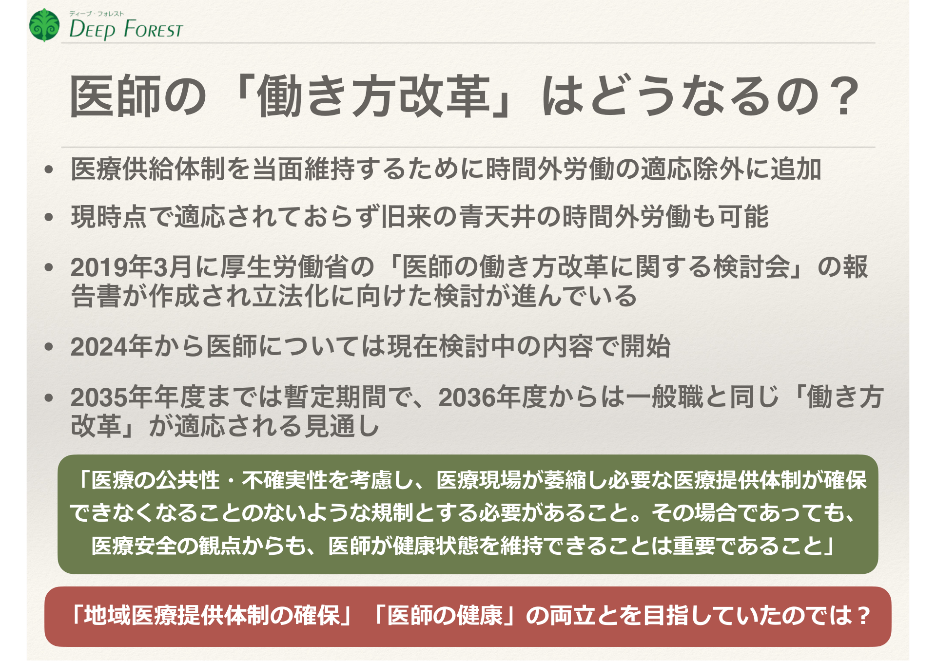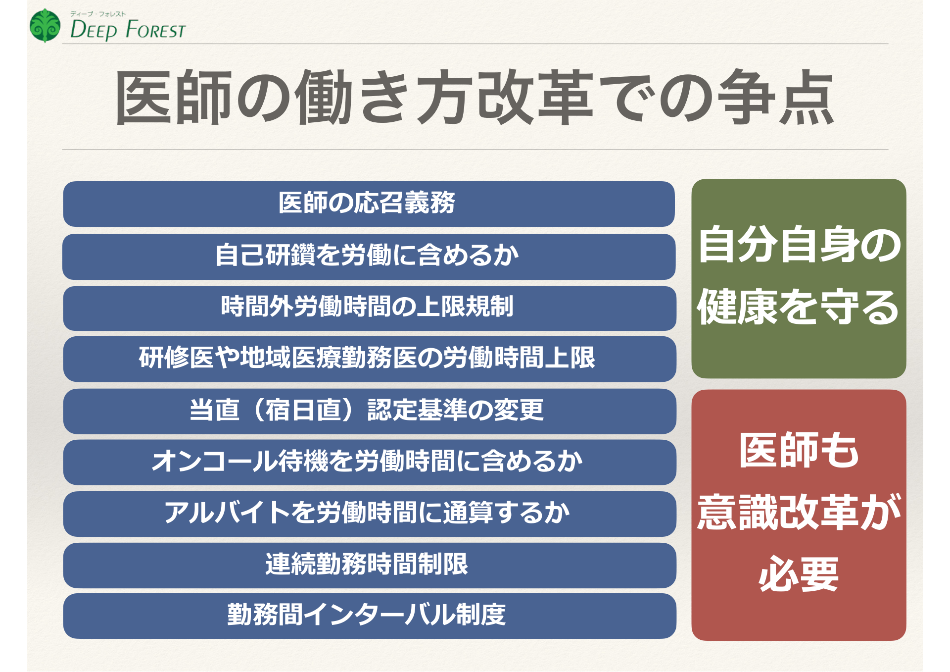 2024年から『医師の働き方改革』も始まりますが、労働基準法など労働者を守るための法律については、医師にも良く知っておいて頂きたいです。