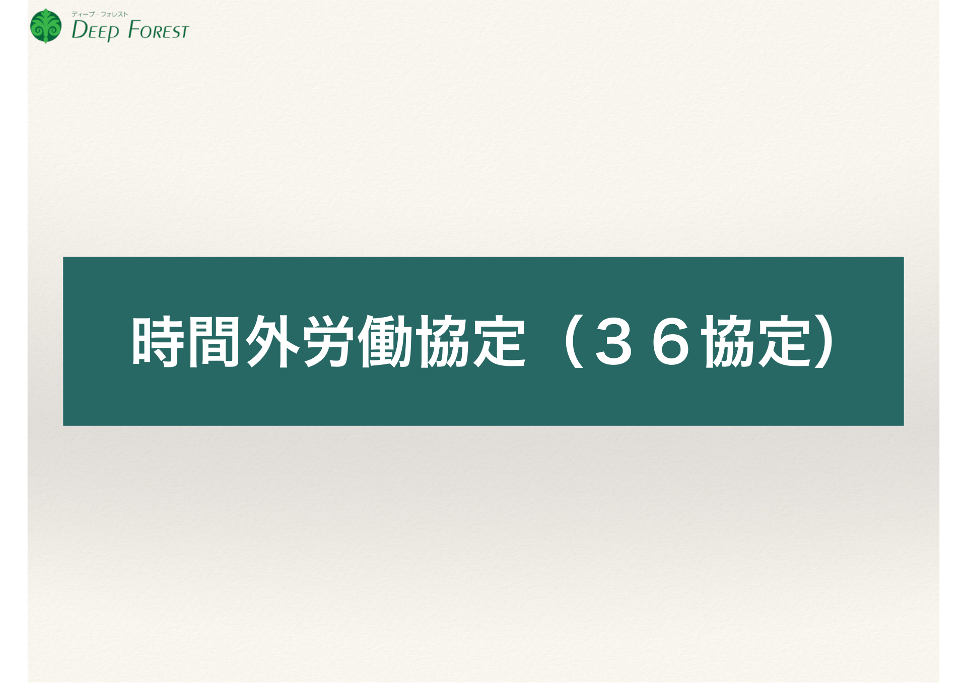 36協定の締結 労働基準法第36条 法定労働時間を超えて労働させる場合や、休日労働をさせる場 合には、あらかじめ書面による協定を締結しなければならない 締結する対象は? 労働者の過半数で組織する労働組合(過半数組合) ない場合は労働者の過半数を代表する者(過半数代表者)