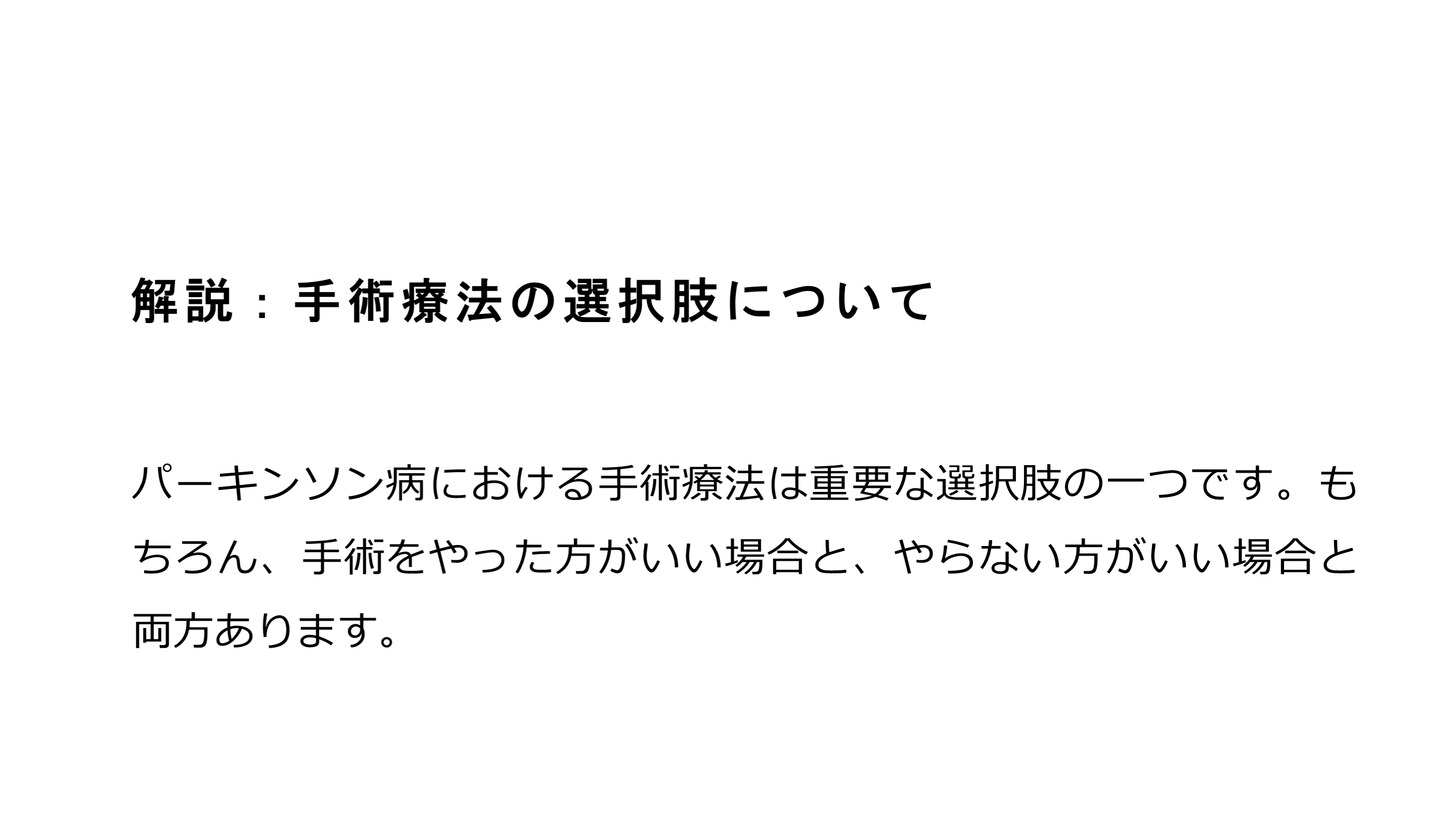 for Parkinson disease 以下、抜粋と解説をしていきます。