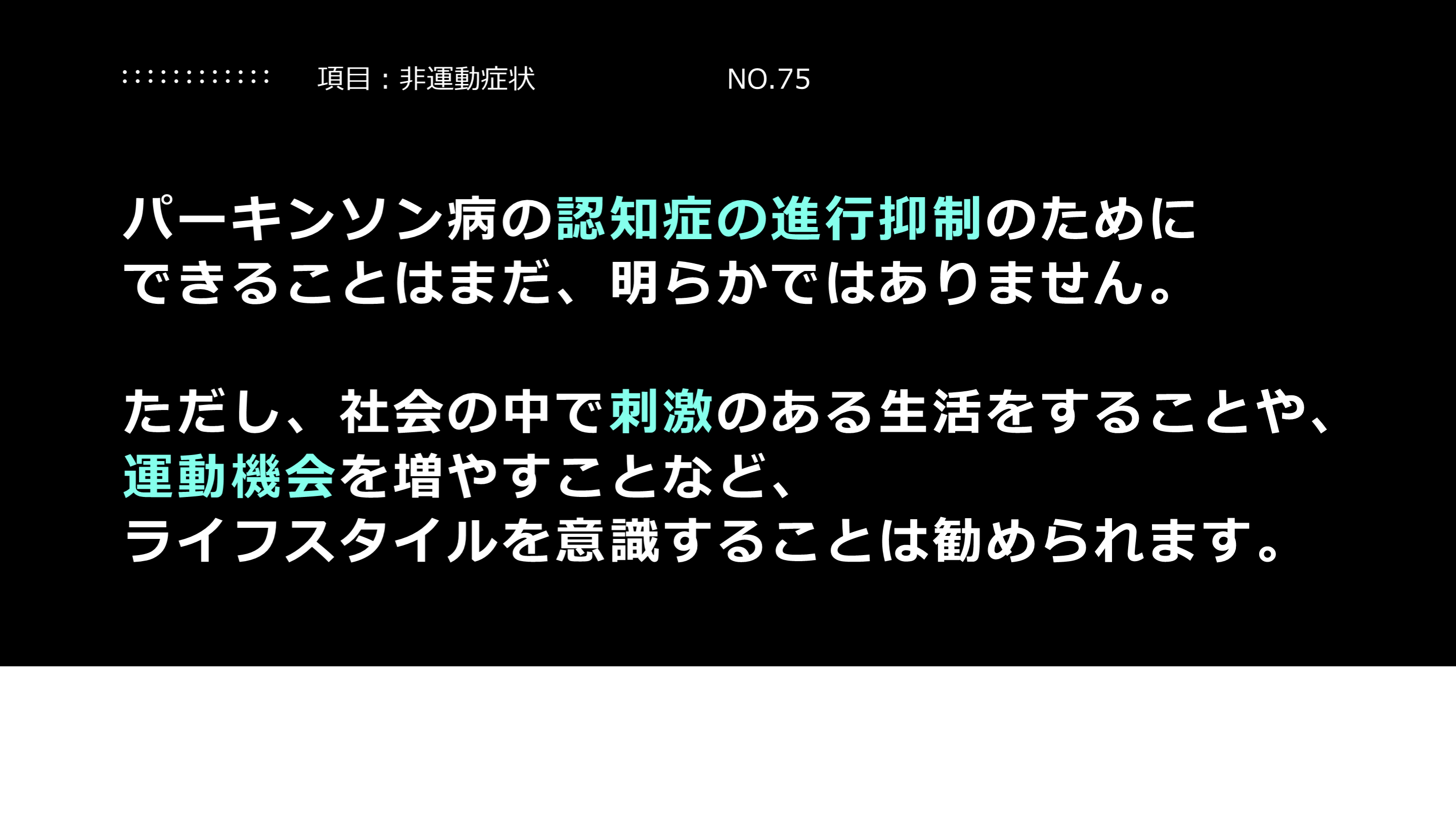 ライフスタイルを意識することは勧められます。 項目:非運動症状 NO.75