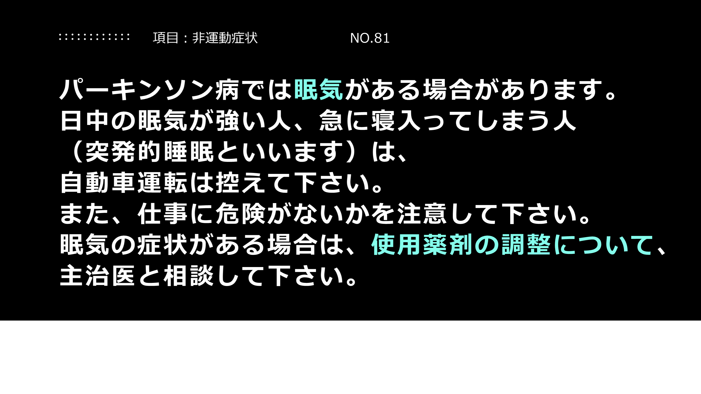 主治医と相談して下さい。 項目:非運動症状 NO.81