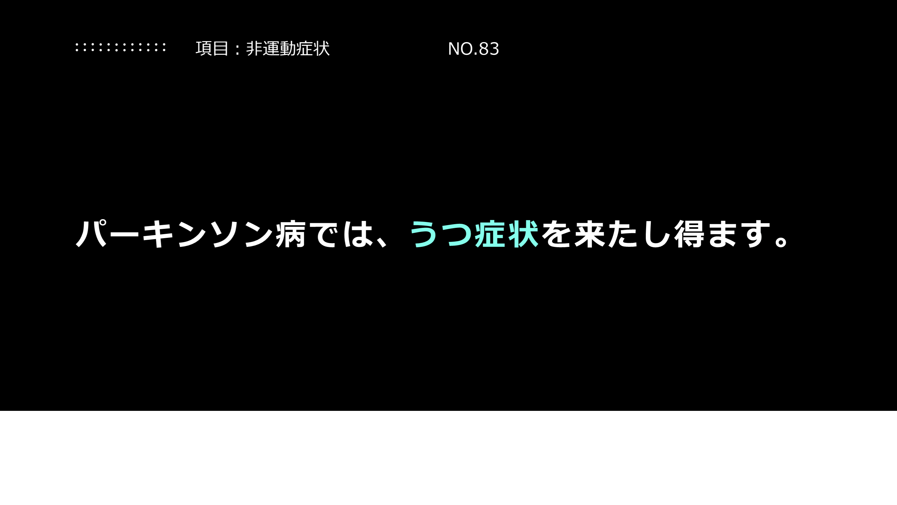 #53. パーキンソン病では、うつ症状を来たし得ます。 項目:非運動症状 NO.83
