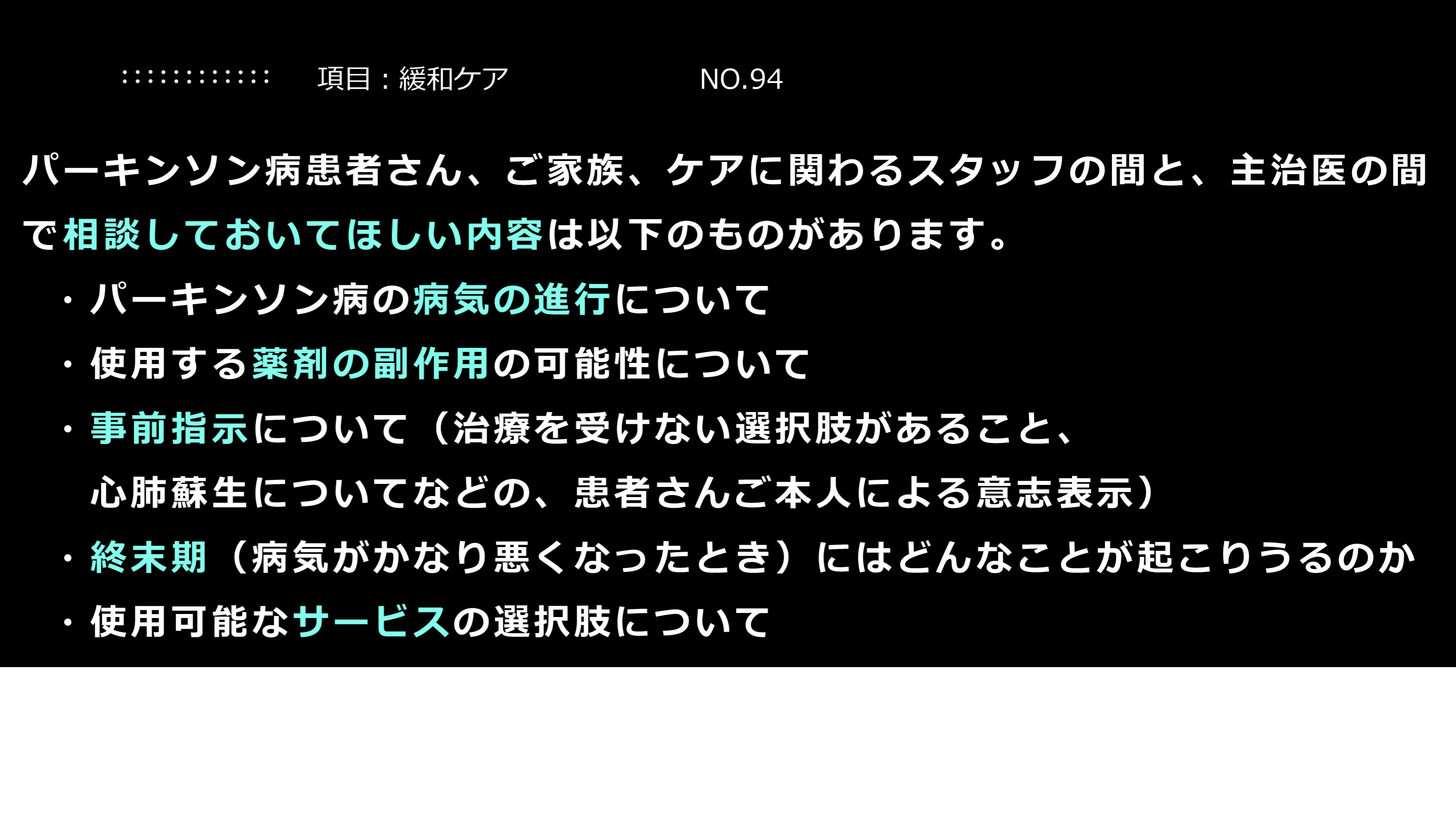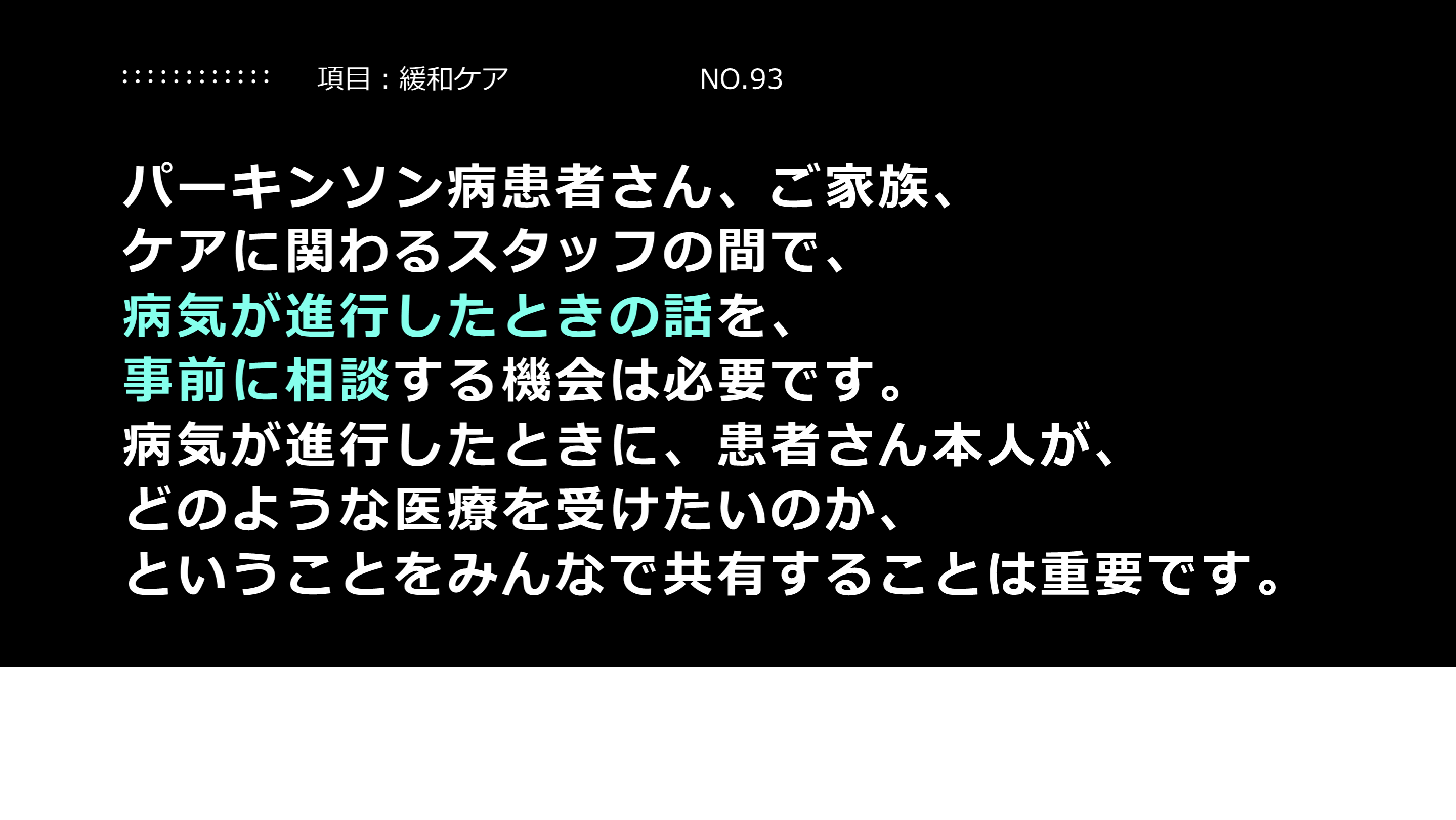 ということをみんなで共有することは重要です。 項目:緩和ケア NO.93