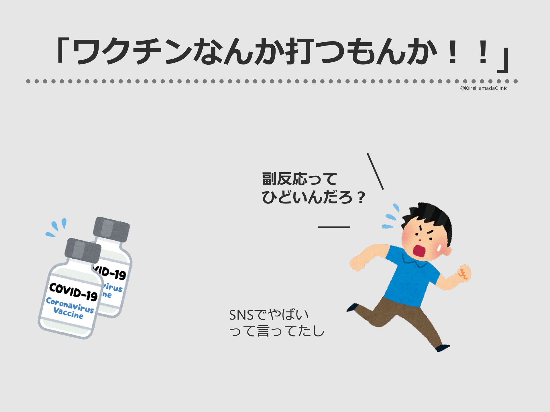 #10. 「ワクチンなんか打つもんか!!」 @KiireHamadaClinic 副反応って ひどいんだろ? SNSでやばい って言ってたし