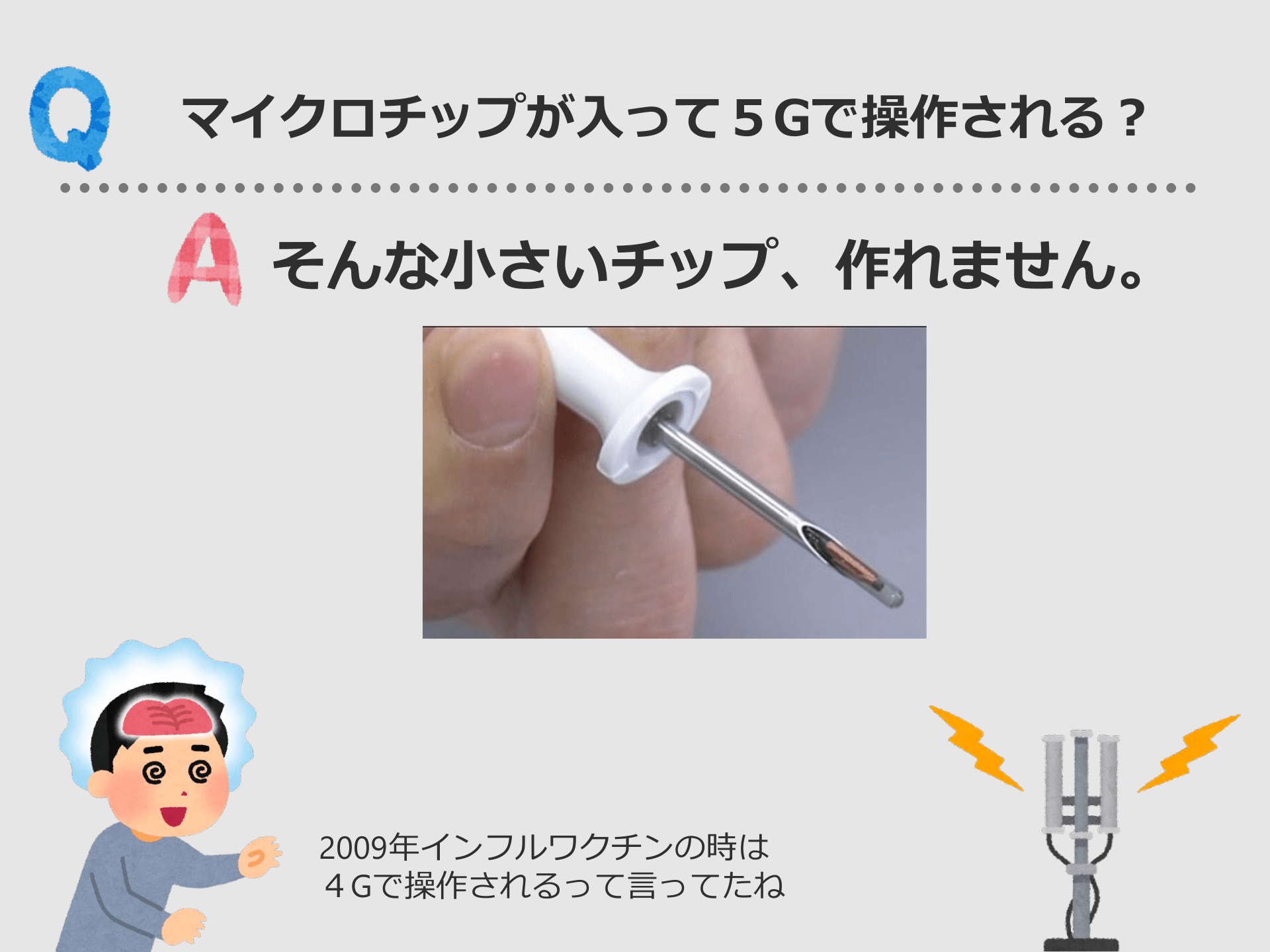 #100. マイクロチップが入って5Gで操作される? そんな小さいチップ、作れません。 2009年インフルワクチンの時は 4Gで操作されるって言ってたね