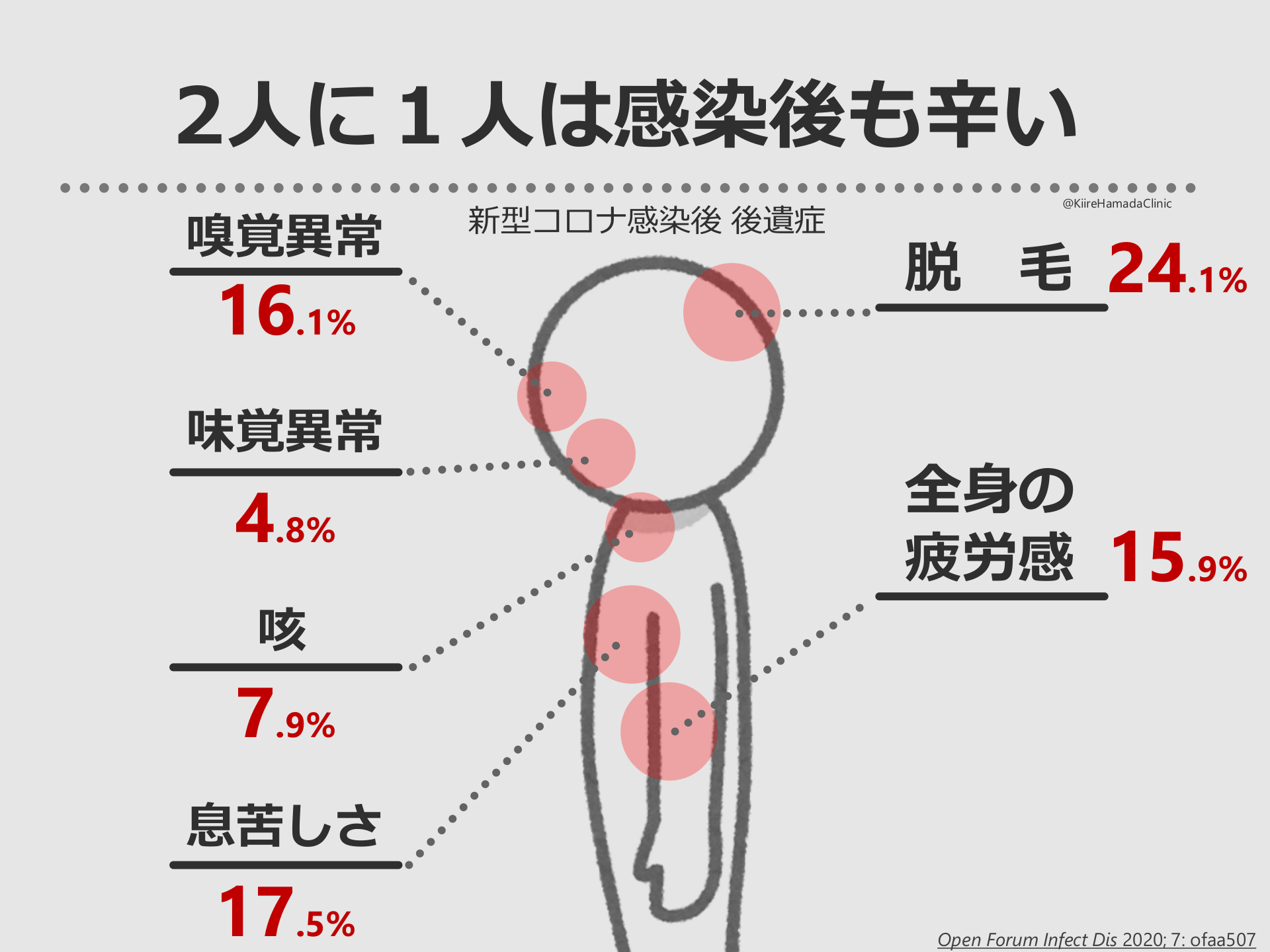 #26. 2人に1人は感染後も辛い 嗅覚異常 16.1% 味覚異常 4.8% 咳 新型コロナ感染後 後遺症 @KiireHamadaClinic 毛 24.1% 全身の 疲労感 15.9% 脱 7.9% 息苦しさ 17.5% Open Forum Infect Dis 2020; 7: ofaa507