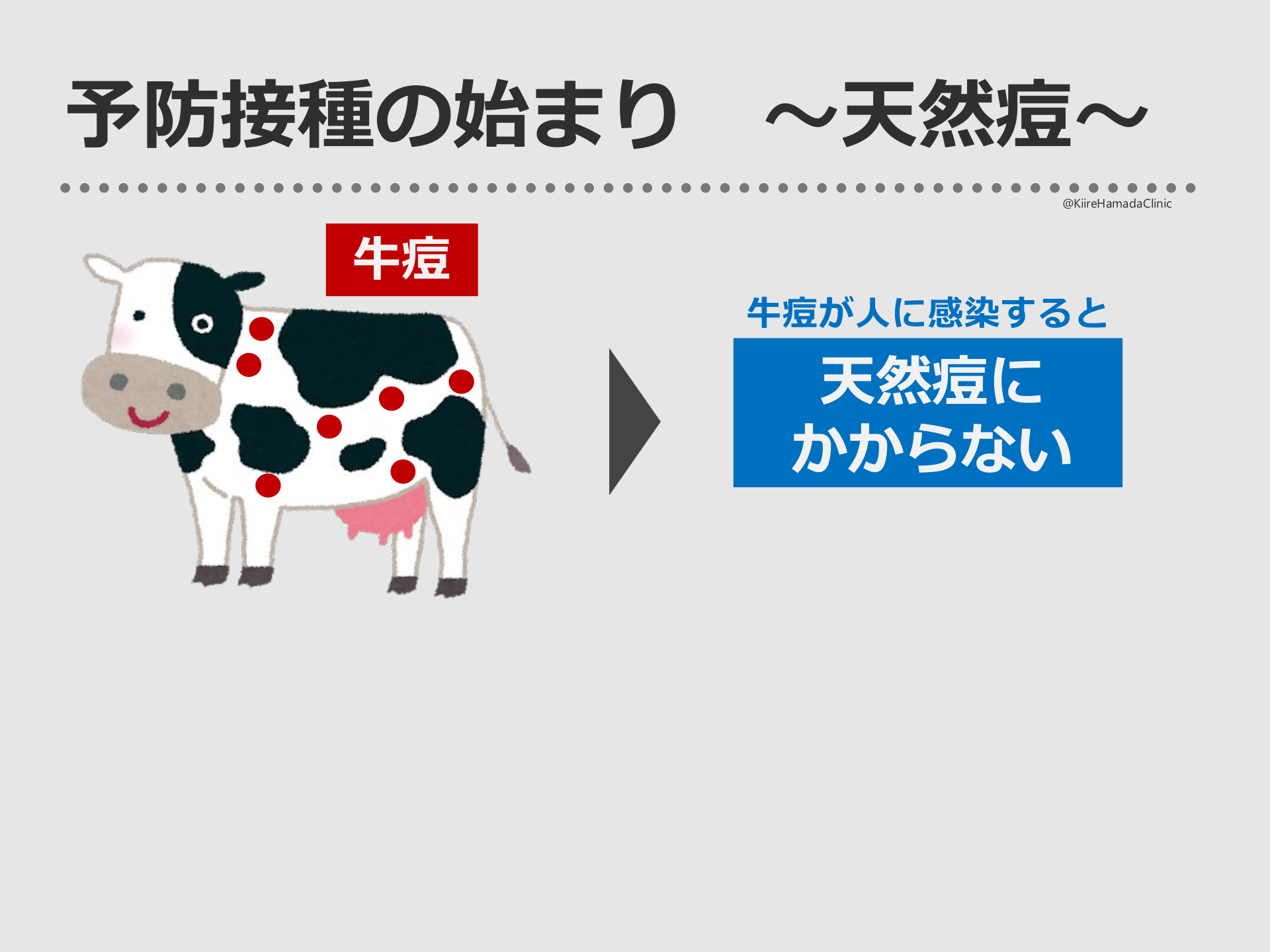 #36. 予防接種の始まり ~天然痘~ @KiireHamadaClinic 牛痘 牛痘が人に感染すると 天然痘に かからない