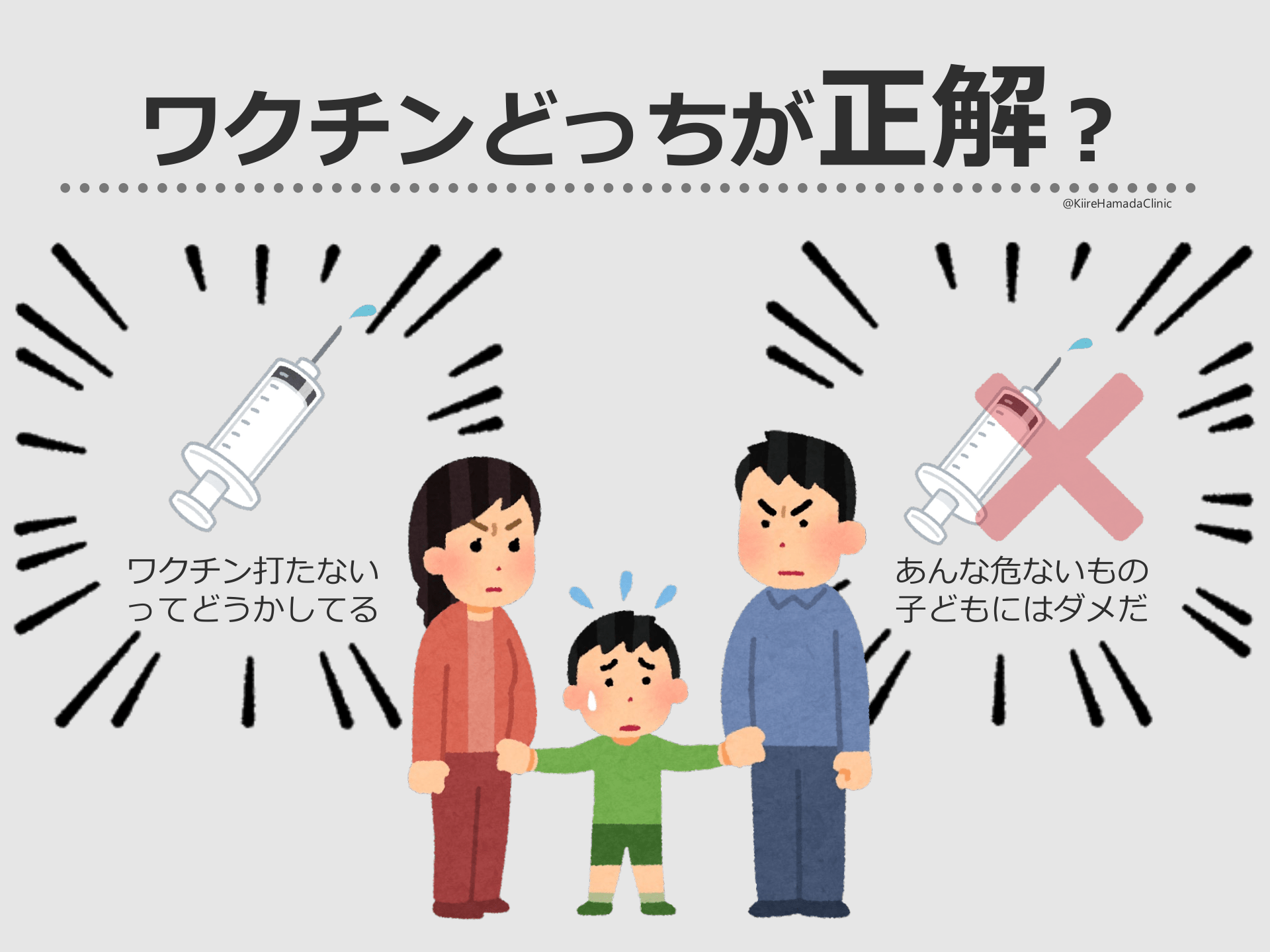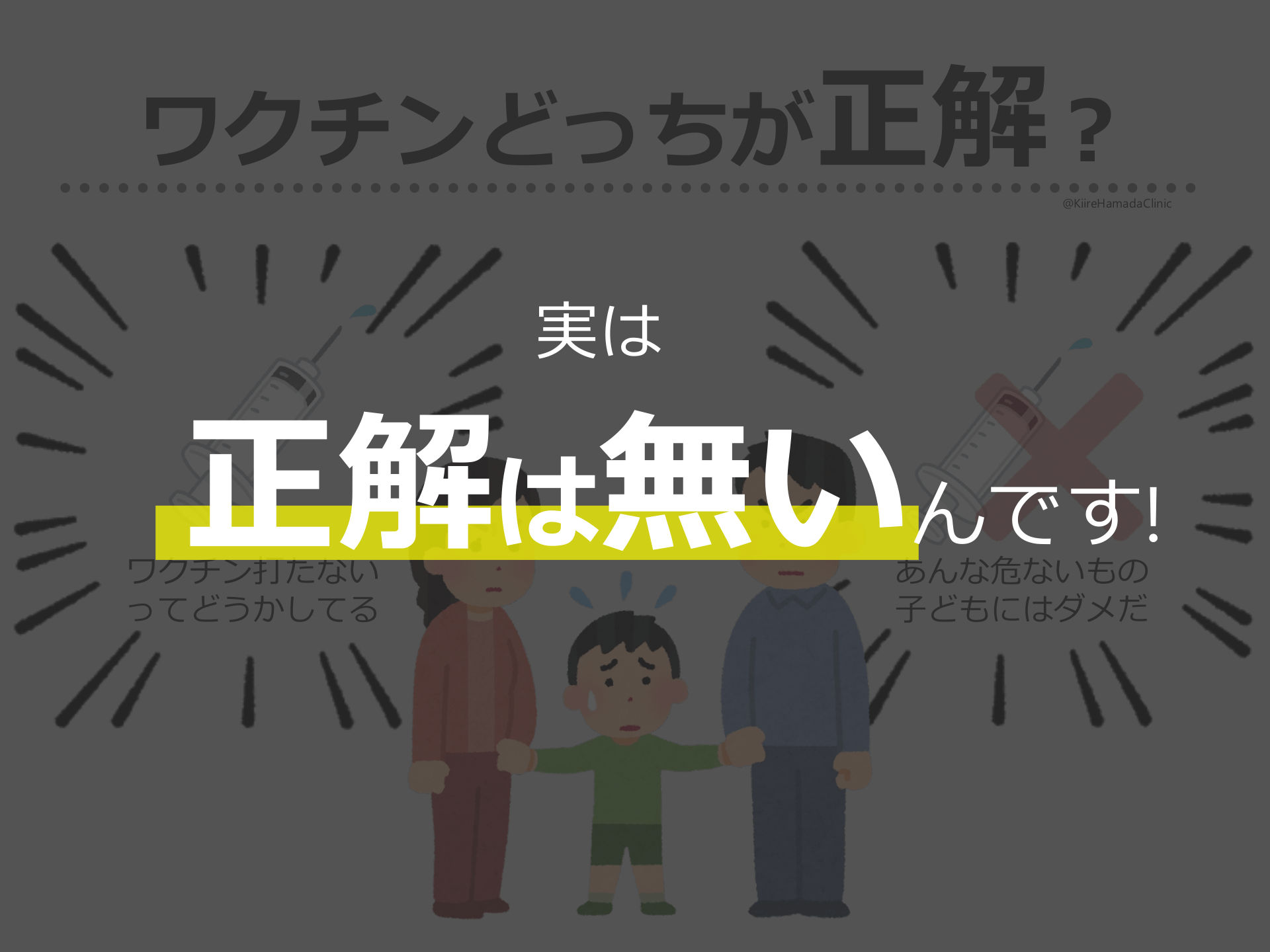 #6. ワクチンどっちが正解? @KiireHamadaClinic 実は 正解は無いんです! ワクチン打たない ってどうかしてる あんな危ないもの 子どもにはダメだ