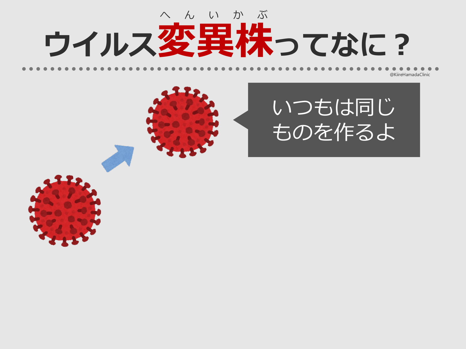 #67. へ ん い か ぶ ウイルス変異株ってなに? @KiireHamadaClinic 違う形が 出来ることも