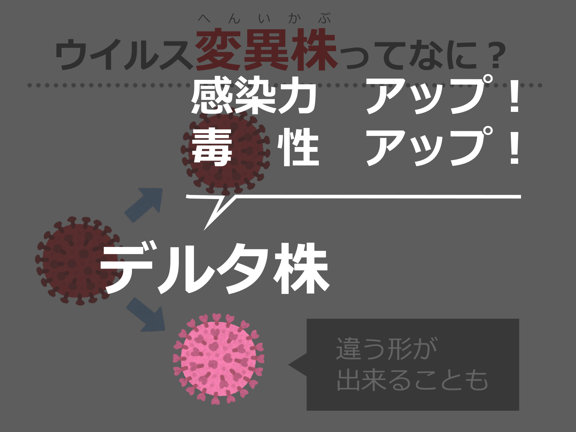 #68. へ ん い か ぶ ウイルス変異株ってなに? 感染力 毒 性 アップ! アップ! デルタ株 違う形が 出来ることも