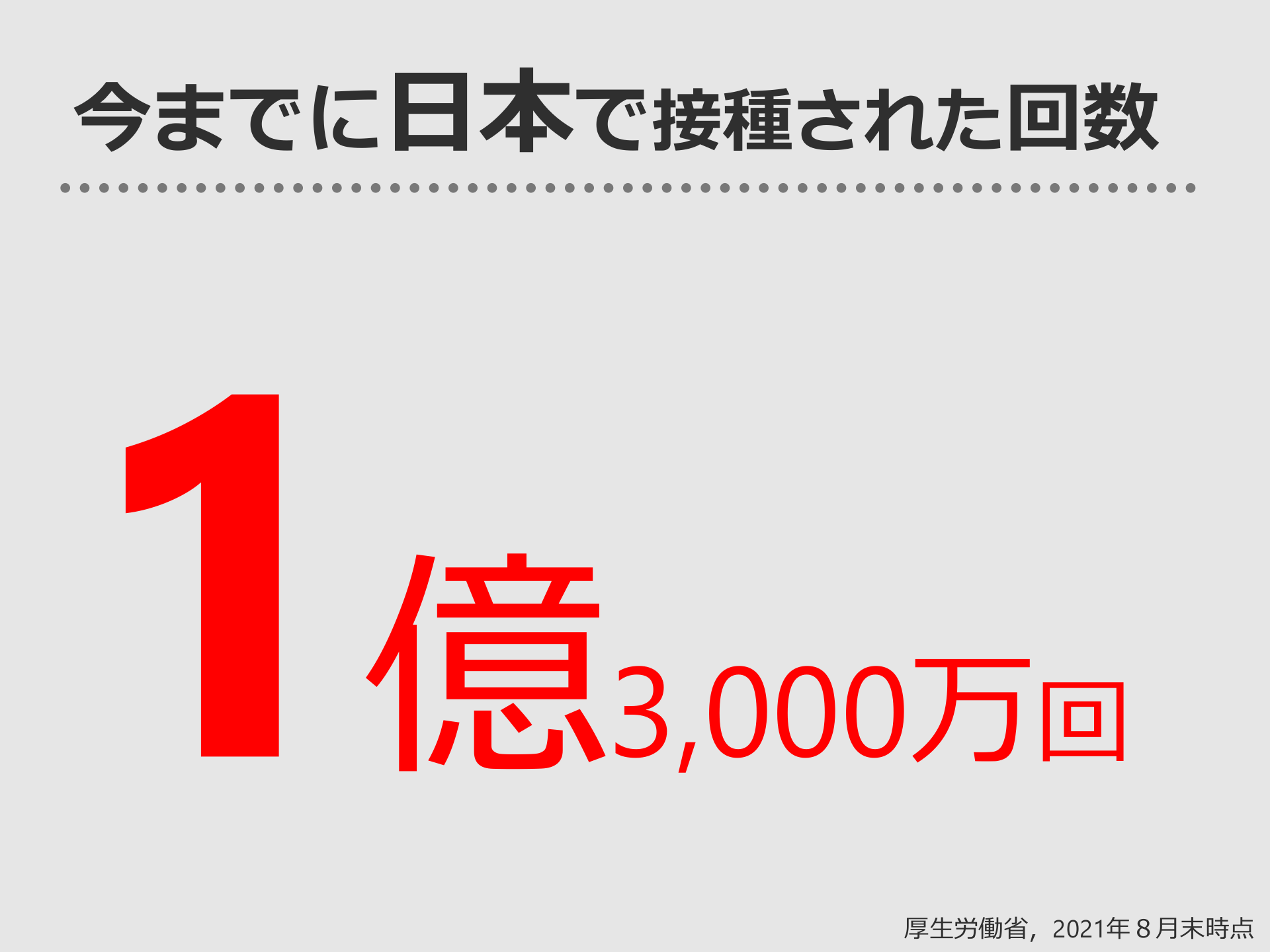 #86. 今までに日本で接種された回数 億3,000万 回 厚生労働省,2021年8月末時点