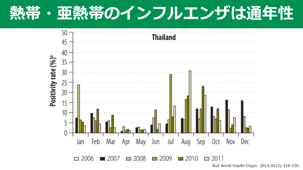 #25. 熱帯・亜熱帯のインフルエンザは通年性 Bull World Health Organ. 2014;92(5):318-330.