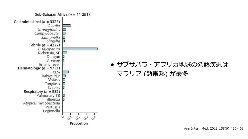 #41. • サブサハラ・アフリカ地域の発熱疾患は マラリア (熱帯熱) が最多 Ann Intern Med. 2013;158(6):456-468.