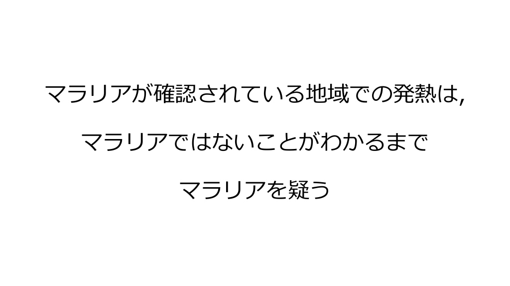 #42. マラリアが確認されている地域での発熱は, マラリアではないことがわかるまで マラリアを疑う