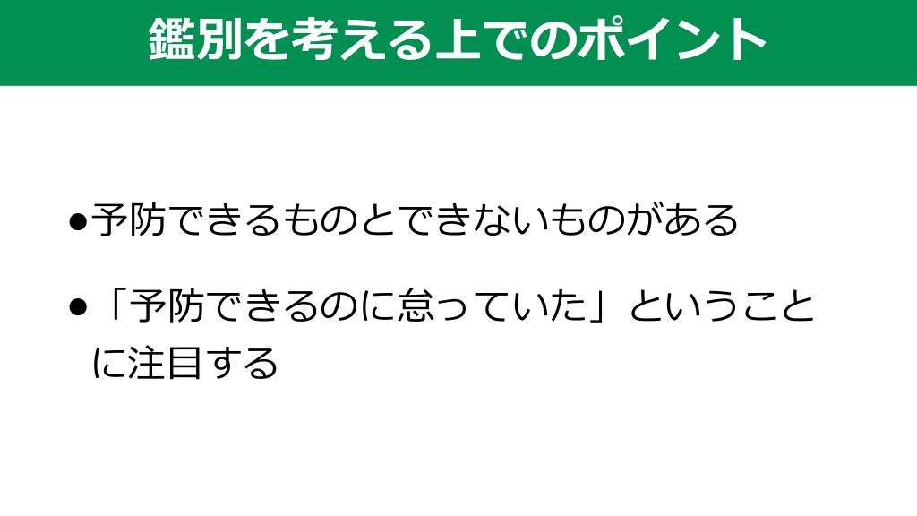 #5. 鑑別を考える上でのポイント •予防できるものとできないものがある •「予防できるのに怠っていた」ということ に注⽬する