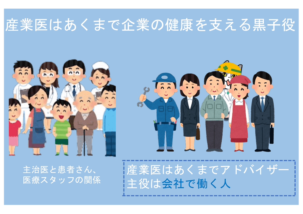 #21. 産業医はあくまで企業の健康を支える黒子役 主治医と患者さん、 医療スタッフの関係 産業医はあくまでアドバイザー 主役は会社で働く人