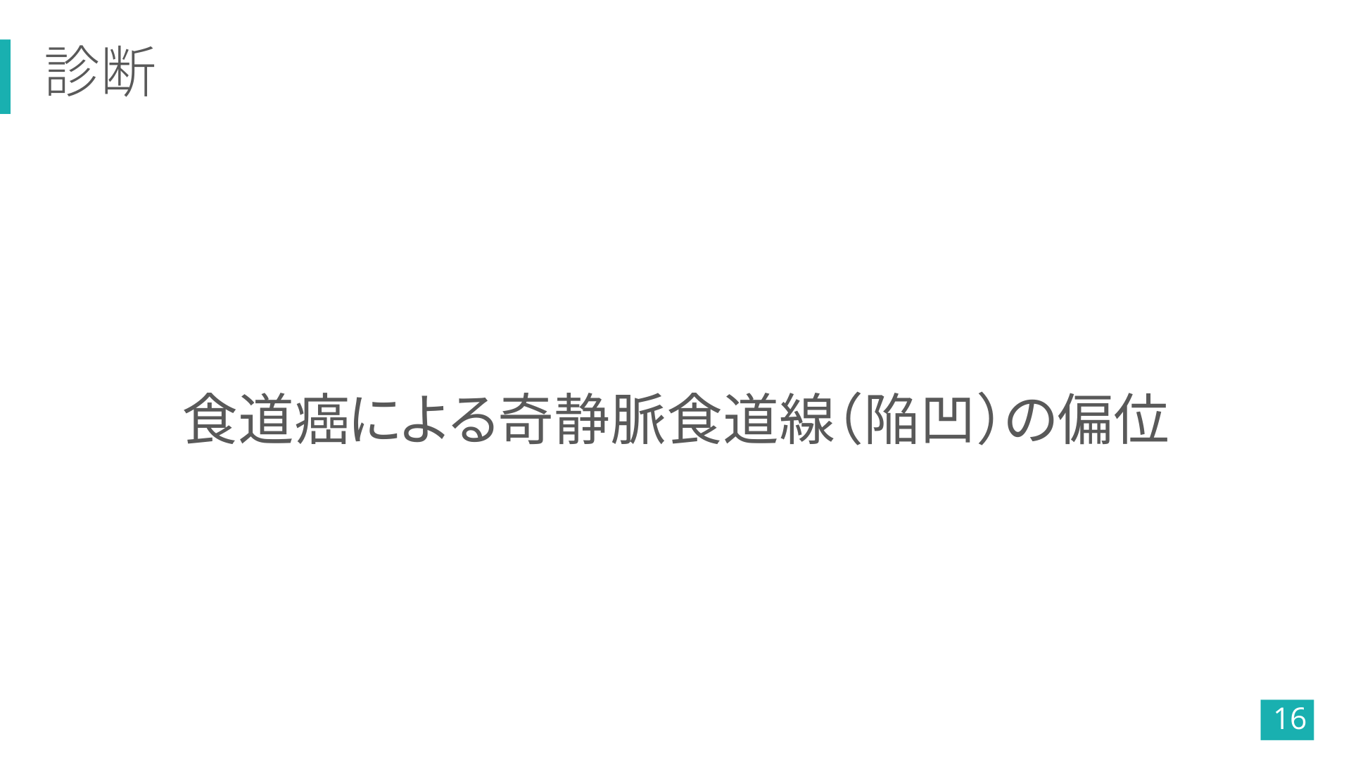#16. 診断 食道癌による奇静脈食道線(陥凹)の偏位 16