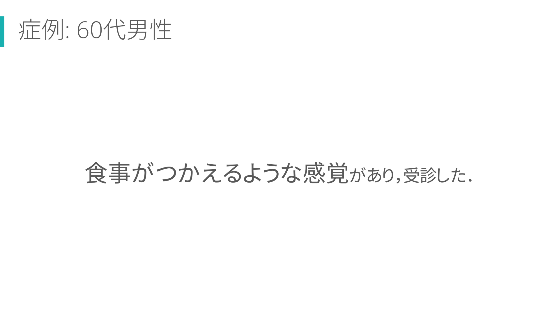 #4. 症例: 60代男性 食事がつかえるような感覚があり,受診した.