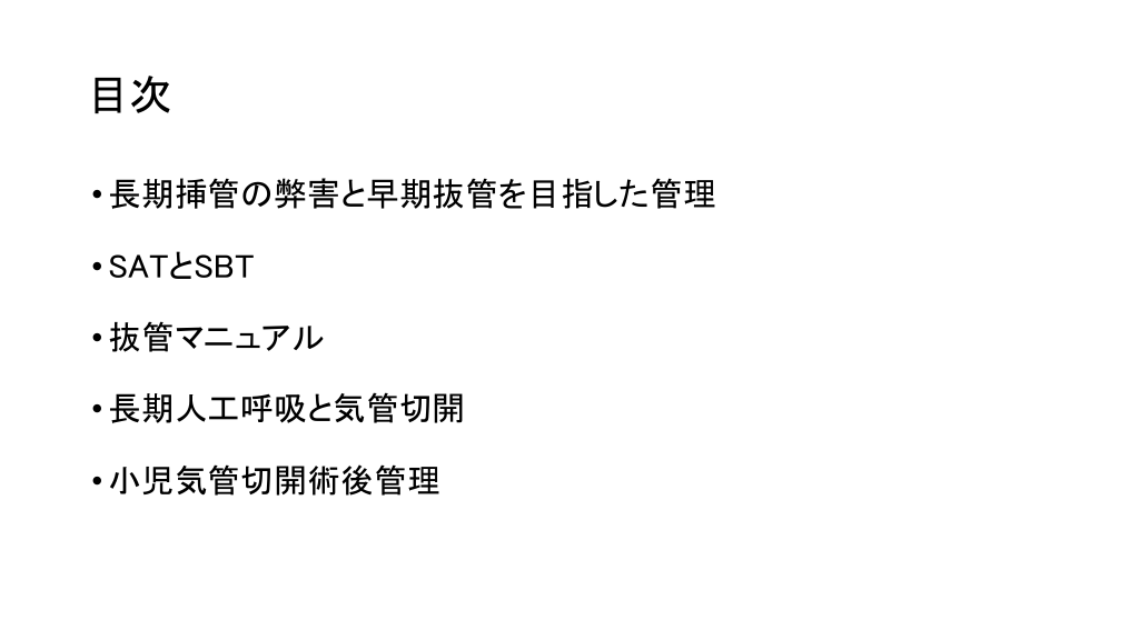 人工呼吸器からの離脱戦略を解説します。急性期にはSAT/SBT(自発覚醒・呼吸トライアル)を用いた日々の評価が重要です。抜管困難例では、長期挿管の弊害を避け、鎮静軽減や離脱促進につながる気管切開をためらわずに検討する意義を学びます。