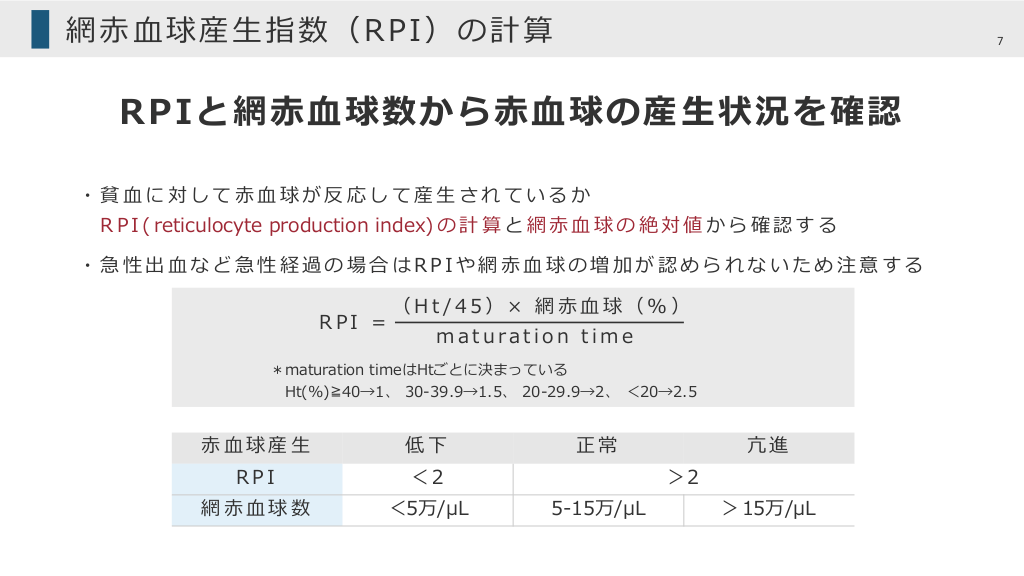 網赤血球産生指数(RPI)の計算と意義