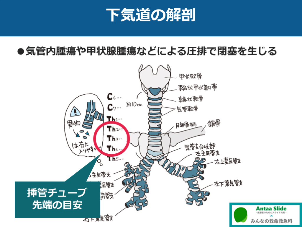 #11. 下気道の解剖 ●気管内腫瘍や甲状腺腫瘍などによる圧排で閉塞を生じる 挿管チューブ