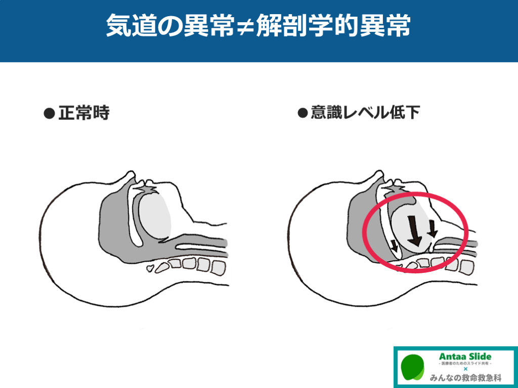 #16. 気道の異常≠解剖学的異常 ●意識レベル低下(例:頭部外傷後)
