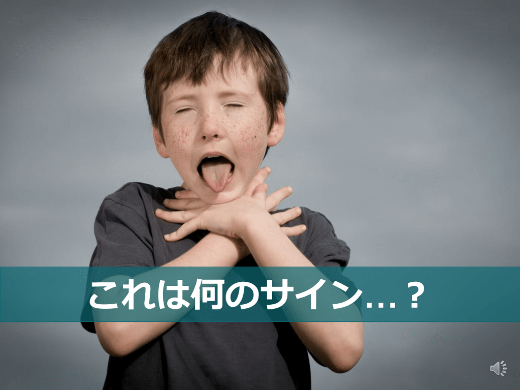 #18. チョークサイン ●苦しそうに喉元に手を当てる仕草のこと(万国共通!)