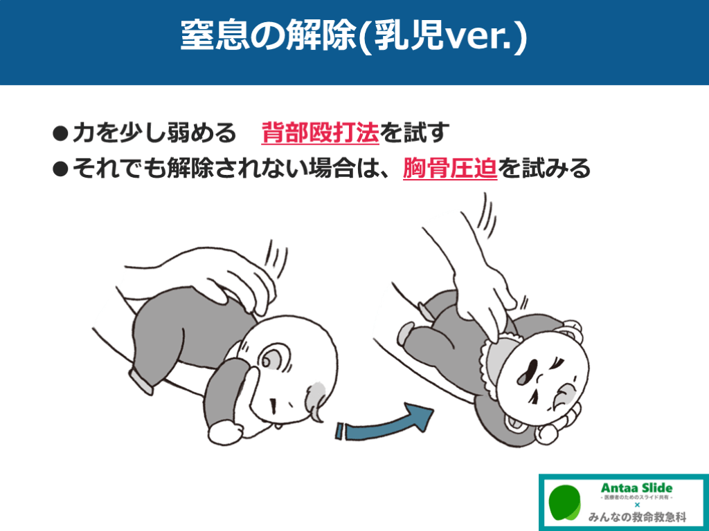 #20. 窒息の解除(乳児ver.) ●力を少し弱める 背部殴打法を試す