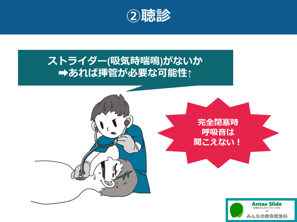 ➡あれば挿管が必要な可能性↑ 完全閉塞時