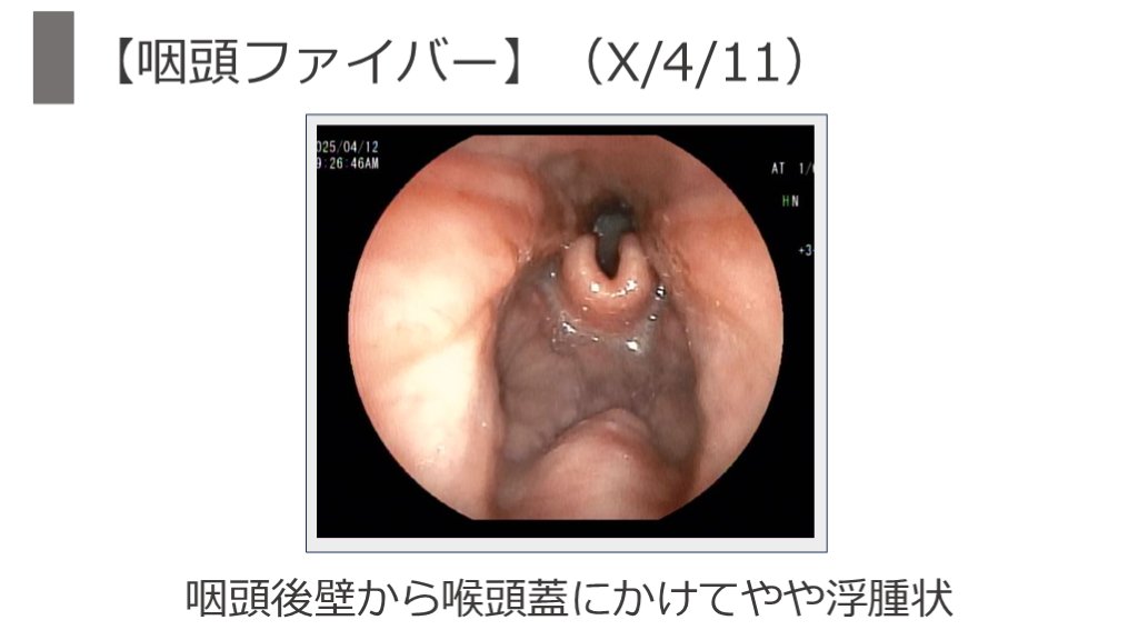 #10. 【咽頭ファイバー】(X/4/11) 咽頭後壁から喉頭蓋にかけてやや浮腫状