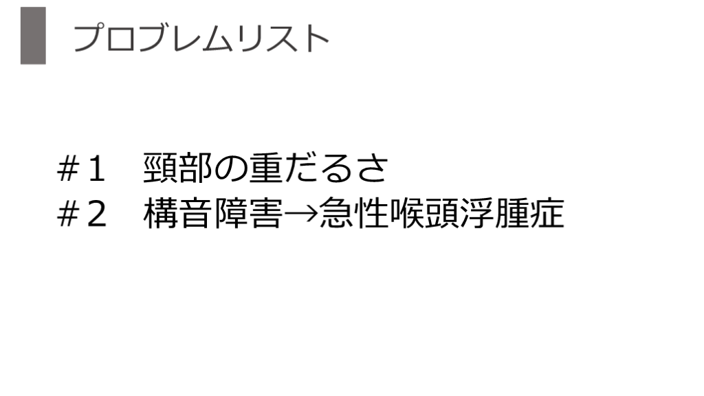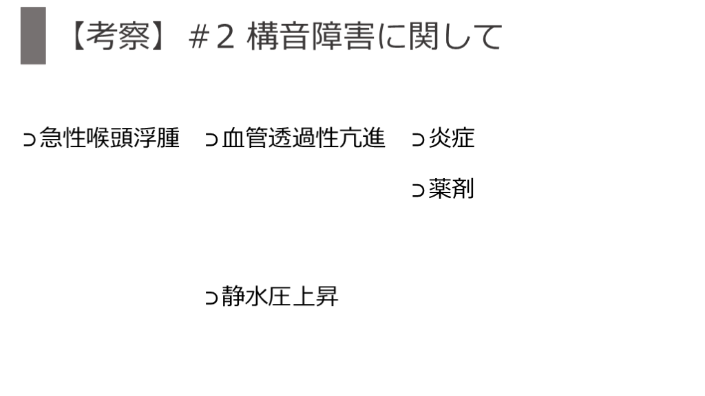 #2 構音障害→急性喉頭浮腫症