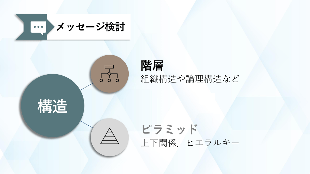 #3. メッセージ検討 階層 組織構造や論理構造など 構造 ピラミッド 上下関係.ヒエラルキー