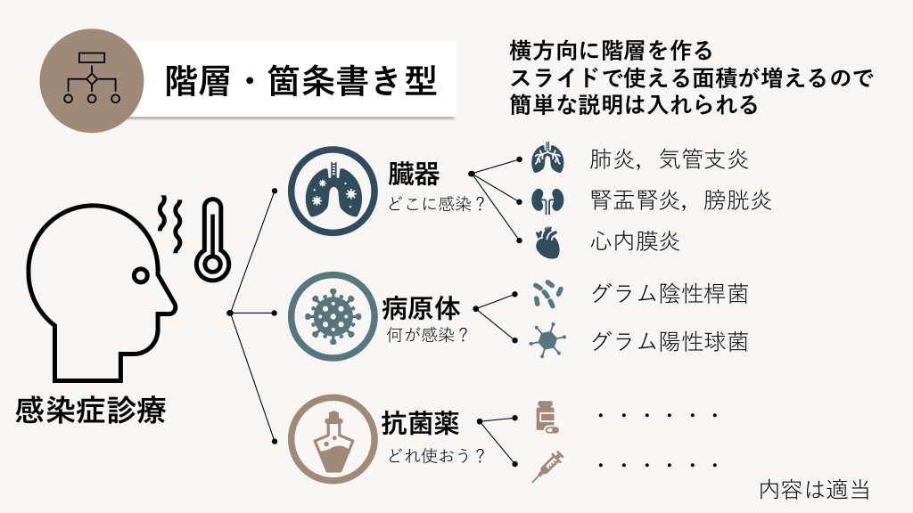 アイコン型と階層・箇条書き型の表現方法