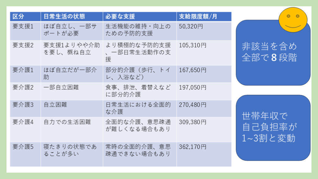 →8段階(非該当~要介護5)、(40~64歳)特定疾病、地域包括支援センターへ相談 介護保険主治医意見書