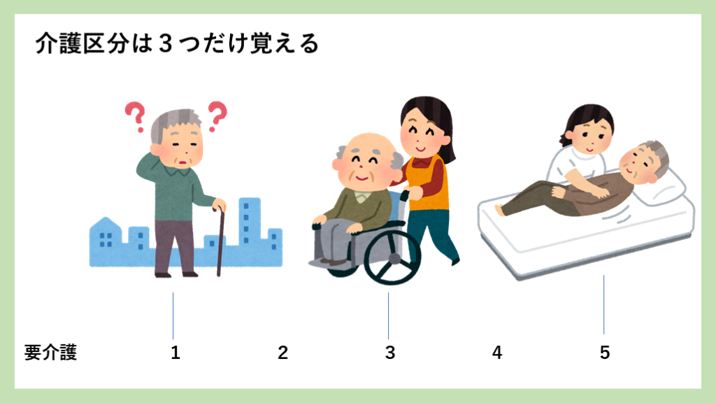 #9. 介護区分は3つだけ覚える 要介護 1 2 3 4 5