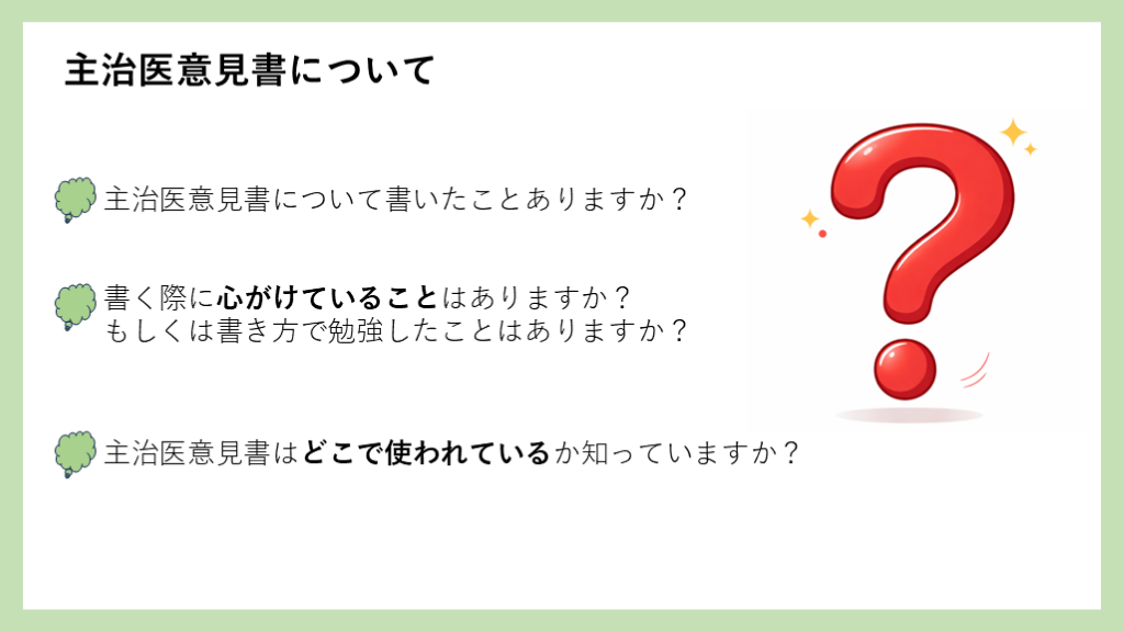 もしくは書き方で勉強したことはありますか? 主治医意見書はどこで使われているか知っていますか?