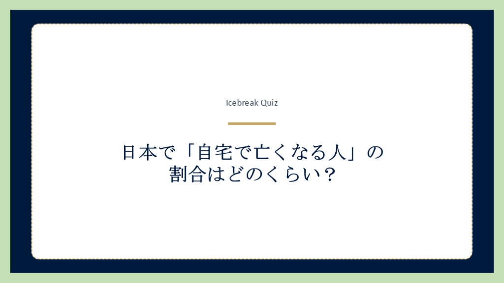 #35. Icebreak Quiz 日本で「自宅で亡くなる人」の 割合はどのくらい?