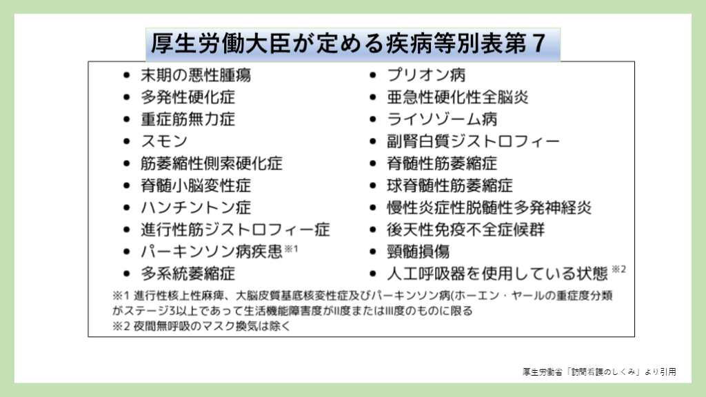 #43. 現場とギャップ 厚生労働省「訪問看護のしくみ」より引用 厚生労働大臣が定める疾病等別表第7