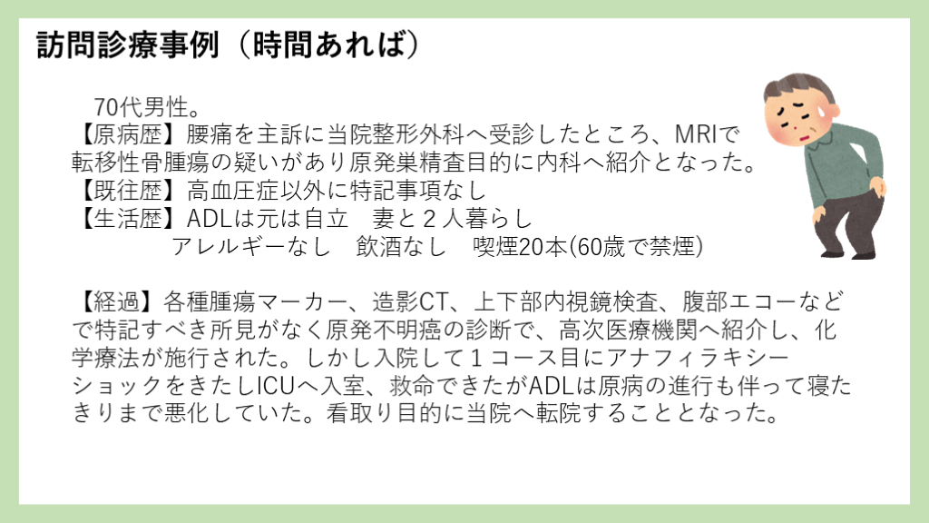 #47. 訪問診療事例(時間あれば) 70代男性。