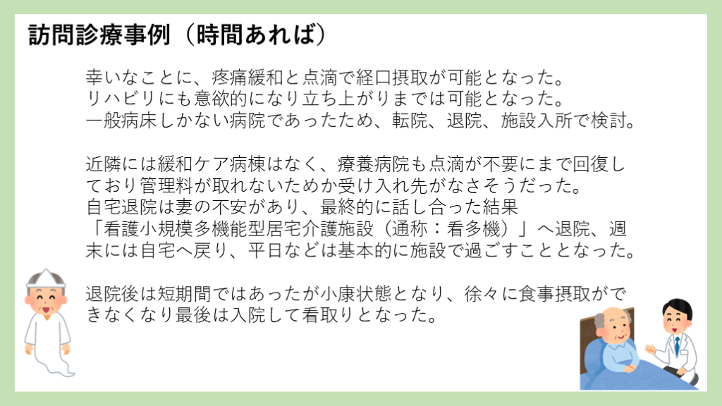 #48. 訪問診療事例(時間あれば) 幸いなことに、疼痛緩和と点滴で経口摂取が可能となった。