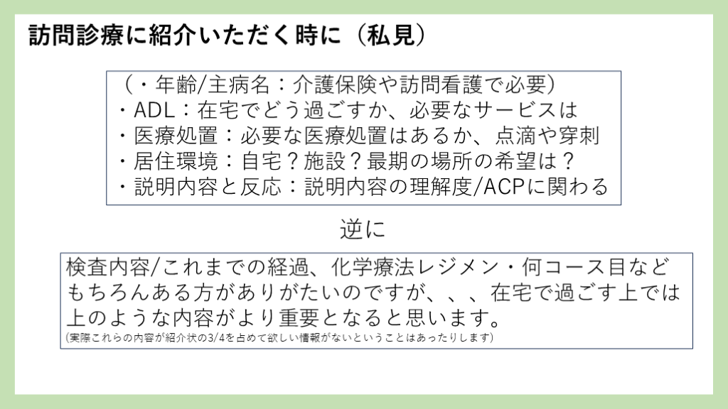 #49. 訪問診療に紹介いただく時に(私見) (・年齢/主病名:介護保険や訪問看護で必要)