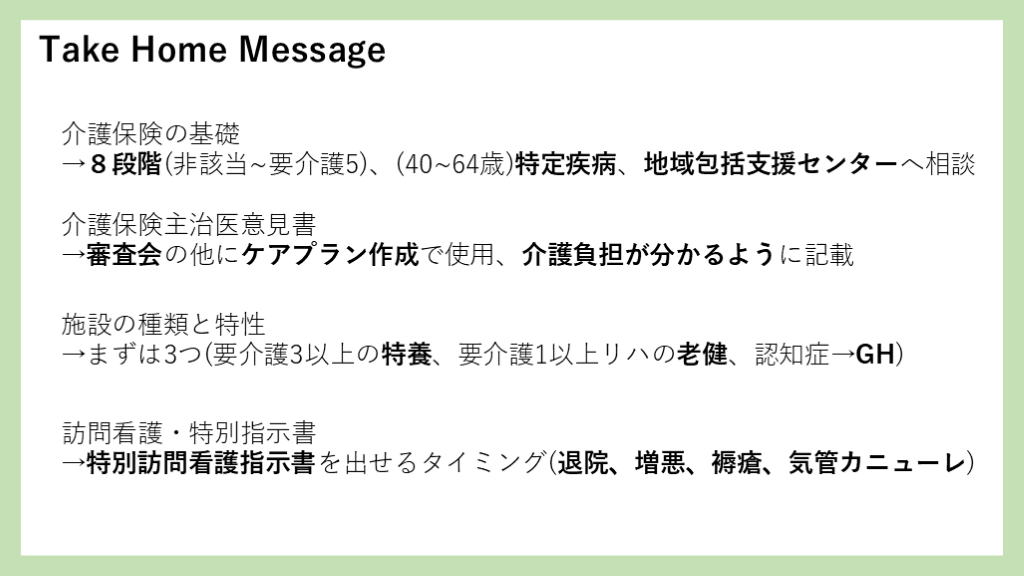 #50. Take Home Message 介護保険の基礎