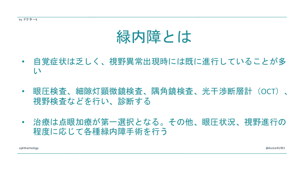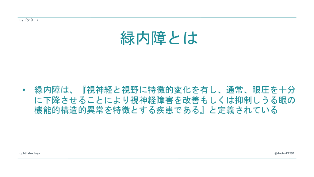 #1. by ドクターK TODAY'S THEME 緑内障を深堀りしよう! ophthalmology @doctorK1991