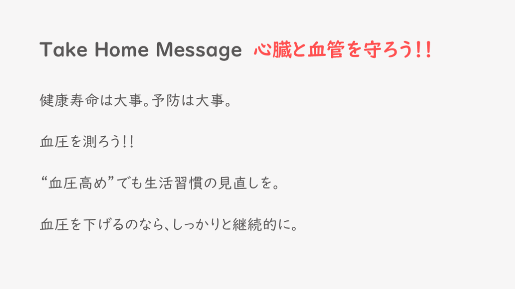 #14. Take Home Message 心臓と血管を守ろう!! 健康寿命は大事。予防は大事。