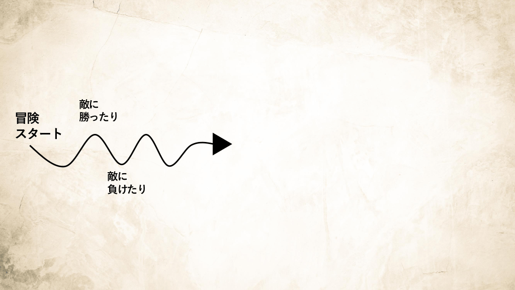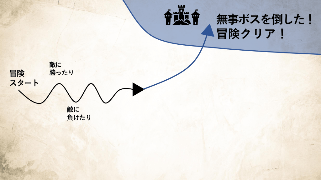 #8. 無事ボスを倒した! 冒険クリア! 冒険 スタート  敵に 勝ったり  敵に 負けたり