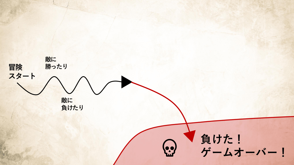 #9. 冒険 スタート  敵に 勝ったり  敵に 負けたり  負けた! ゲームオーバー!