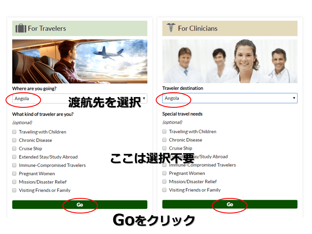 #36. 渡航先を選択 ここは選択不要 Goをクリック