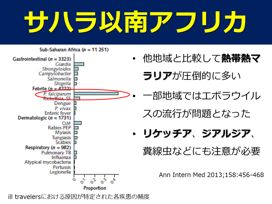 ill travelersにおける原因が特定された各疾患の頻度 Ann Intern Med 2013;158:456-468
