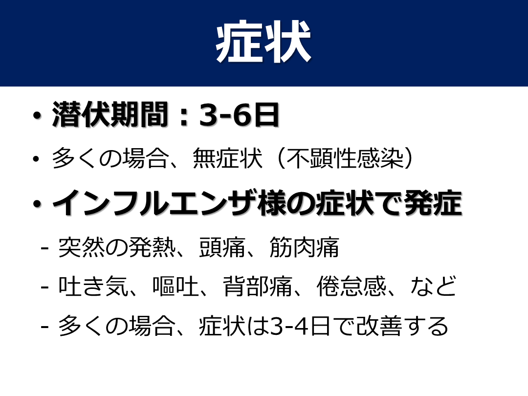 #294. 症状 潜伏期間:2-28日(典型的には5-14日)